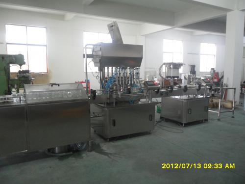 江阴双特机械有限公司结合当前酒酿行业产品的生产工艺要求研制出一条新型灌装设备。工艺流程:人工把空瓶放到理瓶机上理瓶→洗瓶→灌装→旋盖→包装平台→理瓶→贴标→包装平台。灌装机采用定量计量法,使灌装精度达到±0.5%,并无需由于温度变化频繁而调整系统。初灌装时可将灌装头伸入瓶中,使物料不会溅出,增加真空抽液,使灌装头灌装后不会滴液。该生产线是江阴双特机械在充分的市场调研基础上,经过一年多的时间,通过10多位技术工程师自主研制开发的,技术参数已达到或超过国际先进、国内领先水平。该生产线与国内外其他同类设备相比具有以下技术优势:灌装精度高——灌装精度容积≤0.5%,高于国内其他企业精度标准;灌装米粒破损率低——灌装米粒破损率仅为1%;灌装速度快——目前国内其他厂家生产的灌装设备灌装速度基本为20瓶/分钟,而该生产线可达到40瓶/分钟,灌装速度是国内其他厂家设备的2倍;自动化程度高——整条生产线完全实现自动化,仅需1—2名操作工即可完成从上瓶到成品的全部工序,极大节省了劳动力。